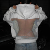 Esta sudadera con capucha de corte relajado destaca por su estampado gráfico en la espalda, que representa un dos desnudo reinterpretado de forma artística. El diseño incorpora un efecto tipo rejilla con sutiles reflejos, aportando textura y profundidad al conjunto. Una prenda con personalidad, que combina comodidad y un enfoque visual moderno.